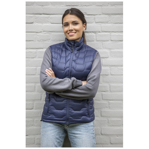Lo smanicato termico GRS da donna Epidote è una scelta elegante per chi è sempre in cerca di nuove avventure. Realizzato con precisione e cura, questo bodywarmer è completamente certificato GRS e rappresenta un’aggiunta più responsabile al tuo guardaroba. Progettato per offrire comfort e calore, il motivo trapuntato a nido d’ape presenta un design moderno e migliora l’isolamento, mentre il tessuto in nylon riciclato dull cire 380T, certificato GRS, garantisce durata e resistenza agli agenti atmosferici. Anche le rifiniture e gli accessori, comprese le cerniere, provengono da materiali riciclati. Dotato di caratteristiche pratiche, lo smanicato Epidote è dotato di tasche anteriori con cerniera e di una tasca interna in basso a sinistra per riporlo in modo sicuro. L’interno con protezione per il mento ti protegge dalle intemperie, mentre la coulisse elastica con cordino regolabile nell’orlo inferiore permette di personalizzare la vestibilità. L’elastico sul cappuccio garantisce una maggiore protezione contro i venti freddi. La piuma riciclata certificata RDS offre calore senza compromettere gli standard etici. Con la certificazione GRS che garantisce una catena di approvvigionamento certificata al 100%, questo capo rappresenta davvero una scelta più responsabile. Questo smanicato è progettato con una forma aderente per un look femminile.