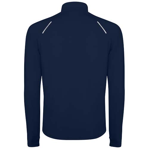 Felpa tecnica da uomo a maniche lunghe raglan. Collo con design a mezza zip invertita caratterizzato da dettagli riflettenti. Coperture per cuciture rinforzate. Polsini con aperture per i pollici. Dettagli catarifrangenti sul retro. Orlo posteriore leggermente più lungo di quello anteriore. Caldo tessuto interno spazzolato.