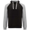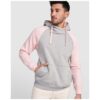 Felpa con cappuccio unisex bicolore. Cappuccio con collo incrociato e occhielli in metallo. Cappuccio interno a contrasto, cordoncino e maniche raglan. Tasca a canguro. Polsini e orlo in maglia a coste 1×1 in elastan. Etichetta rimovibile.