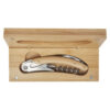 Coltellino da cameriere in acciaio inossidabile dotato di cavatappi e tagliacapsule a scomparsa, con manico in bambù naturale. Il bambù utilizzato è ottenuto e prodotto in base a standard ecosostenibili.