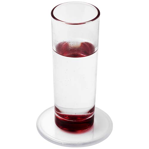 Sottobicchiere in plastica in due parti con inserto stampato su carta. L’inserto di carta può essere stampato su entrambi i lati.