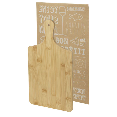 Tagliere in bambù ottenuto e prodotto in base a standard sostenibili. Il tagliere può essere utilizzato anche per servire tapas.