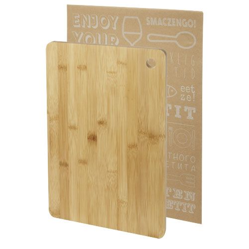 Tagliere in bambù ottenuto e prodotto in base a standard sostenibili. Il tagliere può essere utilizzato anche per servire tapas.