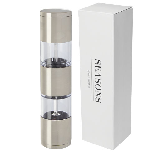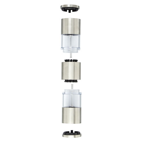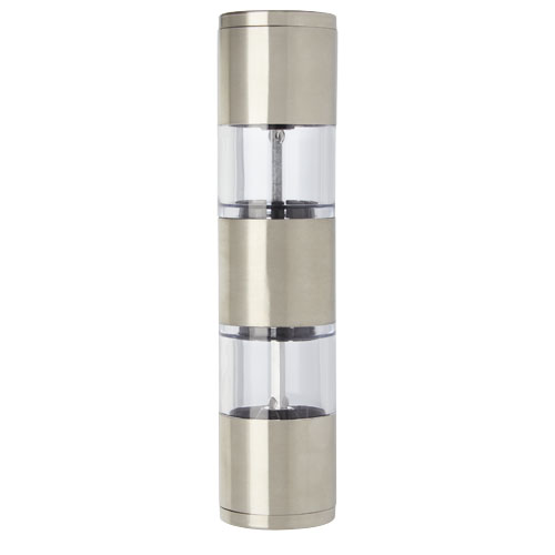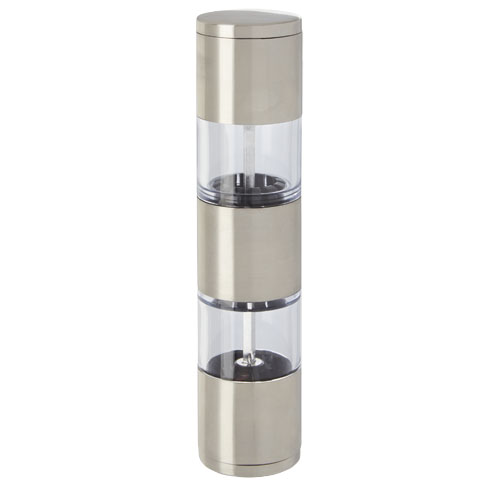 Macinino a doppia funzione con un’estremità per il sale e l’altra per il pepe. Pepe e sale non inclusi. Può contenere 50 g di sale e 36 g di pepe. Capacità: 80 ml.