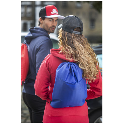 Borsa frigo con chiusura a coulisse di colore nero. Tasca anteriore aperta. Per 12 lattine. Resistenza fino a 5 kg di peso.