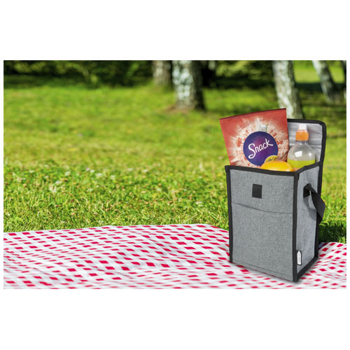 La borsa termica Reclaim per 4 lattine presenta una parte esterna realizzata al 100% in plastica PET riciclata certificata GRS ed è un accessorio ecosostenibile. Presenta una chiusura a patella e un pratico manico.