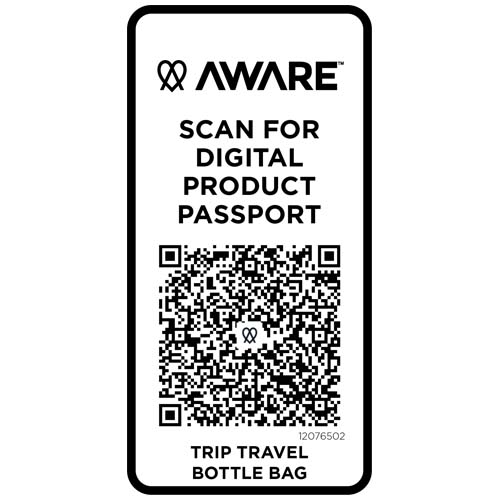 La borsa da viaggio per bottiglie Trip Aware™ in materiale riciclato è una soluzione pratica e leggera perfetta per idratarsi anche in viaggio. Realizzata in poliestere twill 290D con pannello posteriore tessuto a maglia e foderato in PET riciclato 210D/PU, offre resistenza e un design accurato. Lo scomparto principale è dotato di una chiusura con cordoncino ed è adatto sia per le bottiglie grandi con manici che per quelle più piccole, con un’apertura posteriore per un facile accesso. La tasca anteriore può contenere gli oggetti essenziali come il telefono ed include una tasca interna a scorrimento ed un laccetto per fissare le chiavi. La borsa dispone di una cinghia regolabile e una maniglia laterale che consentono un trasporto flessibile. Ogni borsa è inoltre dotata di un sistema di tracciamento Aware™. Questa funzione innovativa consente agli utenti di tracciare le origini e il percorso del loro articolo attraverso un codice QR, migliorando la trasparenza della catena di approvvigionamento e promuovendo un legame più forte tra il prodotto e il relativo processo di produzione. Capacità: 2 litri.