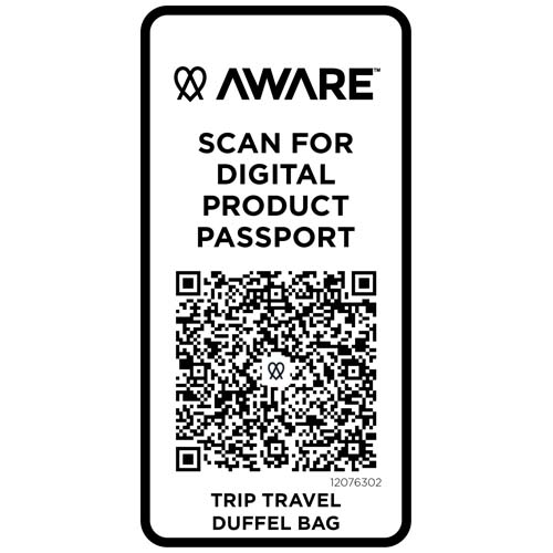 Il borsone da viaggio Trip Aware™ in materiale riciclato è un accessorio versatile e spazioso, ideale per vacanze brevi e per trasportare tutti gli oggetti essenziali con facilità. Realizzato in resistente poliestere twill 290D con un morbido pannello posteriore tessuto a maglia e foderato in PET riciclato 210D/PU, è progettato per essere utilizzato in modo pratico e comodo. Lo scomparto principale comprende un’ampia tasca con cerniera con spazio dedicato per il passaporto, le penne e un laccetto portachiavi, due tasche interne a scorrimento e due portaborracce. Presenta anche uno scomparto separato con apertura a conchiglia perfetto per riporre le scarpe o altro tipo di attrezzatura. Ogni borsa è inoltre dotata di un sistema di tracciamento Aware™. Questa funzione innovativa consente agli utenti di tracciare le origini e il percorso del loro articolo attraverso un codice QR, migliorando la trasparenza della catena di approvvigionamento e promuovendo un legame più forte tra il prodotto e il relativo processo di produzione. Capacità: 42 litri.