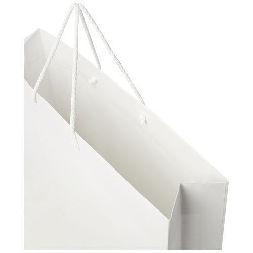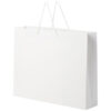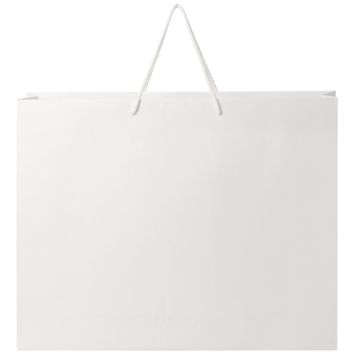 Sacchetto XXL di carta integra da 170 g/m² opaca (45 x 10 x 35 cm) realizzato a mano con manici di plastica. La parte anteriore e posteriore personalizzabili offrono un ampio spazio per stampare un logo o qualsiasi altro design, rendendolo un ottimo strumento di marketing aziendale. Realizzata in Europa e riciclabile al 100%.