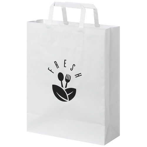 Sacchetto in carta kraft di dimensioni medie (25 x 11 x 32 cm) con manici piatti. Realizzato in Europa con carta di provenienza responsabile (bianco da 90 g/m², marrone da 80 g/m²) è una soluzione per il confezionamento sostenibile e durevole con ampio spazio per una varietà di articoli. L’aspetto naturale e rustico della carta kraft aggiunge un tocco elegante adatto per qualsiasi occasione. Perfetto per lo shopping, i regali o gli eventi, questo sacchetto è un’alternativa ecologica alle borse di plastica. Scegli la praticità e la responsabilità ambientale con i nostri sacchetti di carta kraft. Dimensione: 25 x 11 x 31 cm.