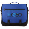 Borsa porta documenti con tracolla regolabile, chiusura della patella con fibbie, tasca frontale con zip, scomparto principale con zip e diverse tasche interne.
