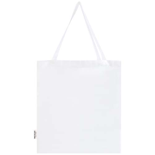 La tote bag a soffietto Madras realizzata in cotone riciclato al 100% certificato GRS è perfetta da regalare durante un evento, una conferenza, oppure da utilizzare come shopper per la spesa. La densità del cotone di 140 g/m² rende questa borsa robusta, resistente e adatta per trasportare oggetti pesanti nello scomparto principale. Grazie ai manici a spalla lunghi 30 cm, questa tote bag è facile da trasportare. Anche i metodi di stampa disponibili per questa tote bag sono certificati GRS, assicurando che l’intera catena di fornitura sia trasparente e certificata. Realizzata in India. Resistenza fino a 5 kg di peso.