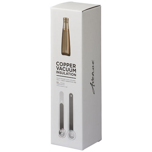Bottiglia Duke, parete doppio strato 18/8 gradi in acciaio inox con isolamento sottovuoto. L’interno della parete è placata in rame che permette di mantenere fredde le bevande per 12 ore, quelle calde per 48 ore. Capacità 500ml. Confezione regalo Avenue.
