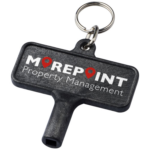 Chiave multiuso con portachiavi per oggetti quali radiatori, contatori, lampioni. Apertura quadrata con lati di 5 mm.