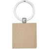 Portachiavi quadrato in legno di faggio, confezionato in involucro di carta Kraft marrone riciclata. Dimensioni del portachiavi 4 x 4 cm. Adatto per incisione laser.
