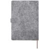 Quaderno A5 con copertina rigida in feltro riciclato e sughero, con 80 fogli a righe di carta da 70 g/m². Il quaderno presenta 3 tasche per biglietti da visita, un nastro in colore coordinato marrone e angoli arrotondati.