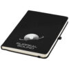 Notebook A5 dal design geometrico con finitura morbida. Composto da 80 pagine (80gsm) a righe, segnapagina, chiusura elastica e anellino portapenna.