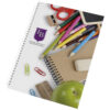 Include 80 fogli di carta in bianco (da 80 g/m²) e spirale nera o bianca. Disponibile in 3 misure; A4, A5 e A6. Disponibile decorazione a colori CMYK sulla copertina e su ogni foglio, davanti e dietro.