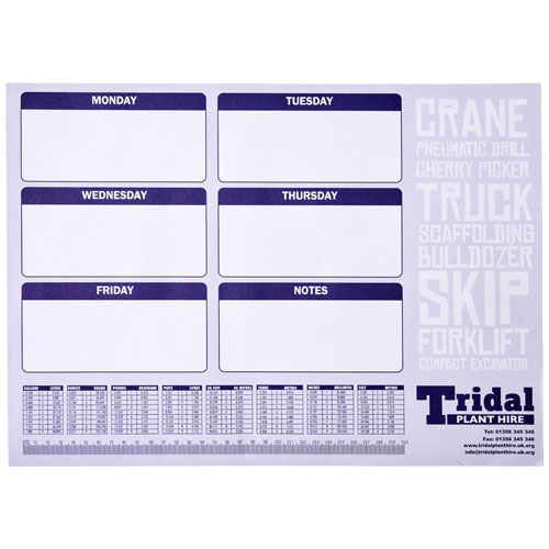 Blocco note Desk-Mate® di colore bianco e formato A2 in carta da 80 g/m2. Stampa full color disponibile su ciascun foglio. Disponibile in 2 versioni (25/50 fogli).