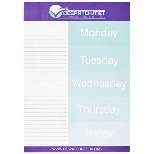 Blocco note Desk-Mate® di colore bianco e formato A4. La versione standard Include 50 fogli di carta da 80 g/m2. Stampa full color disponibile su ciascun foglio. Disponibile in 3 versioni (25/50/100 fogli).