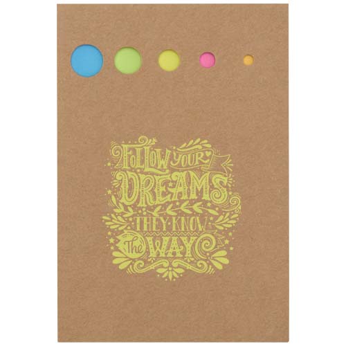 Il segnalibro in legno Freiji presenta 125 foglietti adesivi piccoli colorati (4,2 x 0,6 cm) e 25 foglietti adesivi grandi (4,2 x 4 cm) di colore giallo.