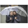 Ombrello ad apertura automatica da 23” con telo in poliestere pongee in PET riciclato. Presenta una robusta asta in metallo, un telaio in fibra di vetro e un comodo manico in EVA con estremità in colore abbinato. Ampia superficie di stampa presente su ogni pannello.