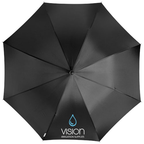 Ombrello dal design esclusivo con apertura automatica. Asta e telaio in metallo. Manico ricurvo gommato con dettagli in alluminio. Design del manico speciale progettato per appendere l’ombrello al tavolo.