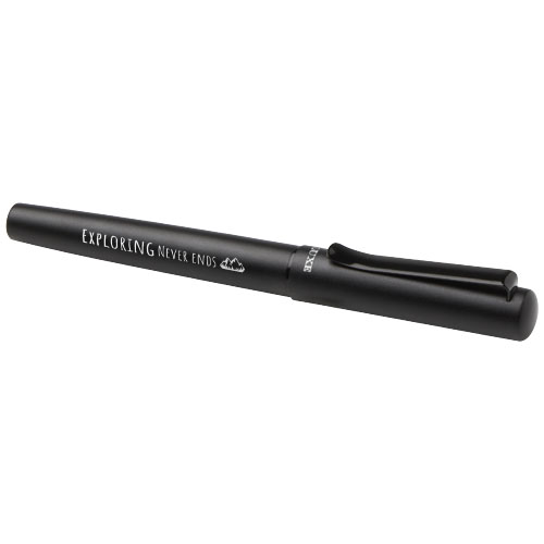 Penna stilografica con fusto in alluminio riciclato, rivestimento nero opaco e impugnatura in alluminio riciclato di colore nero. L’alluminio è un materiale riciclabile e scegliere questa penna ti permette di favorire pratiche più sostenibili e dare nuova vita all’alluminio di scarto. Questa elegante penna stilografica è un’opzione pratica e più sostenibile per persone e organizzazioni alla ricerca di strumenti di scrittura ecologici. Fornito con una cartuccia di inchiostro nero e una confezione regalo nera. Dimensione della scatola: 16,8 x 4,2 x 2,5 cm.