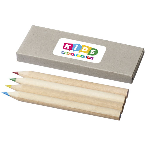 4 matite colorate in scatola di cartoncino. Personalizzazione non disponibile sui pastelli.