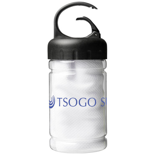 Asciugamano rinfrescante ad assorbimento rapido, ad asciugatura rapida e lavabile, realizzato in poliestere resistente e duraturo, per rimanere freschi durante l’allenamento o attività all’aperto. Fornito in un contenitore in PET con maniglia e moschettone integrato per un facile trasporto. Disponibile in 5 nuovi colori. Ampia area decorativa del logo sul contenitore, decorazione possibile anche sull’asciugamano stesso. Dimensione: 30 x 80 cm.