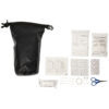 Resistente e durevole borsa impermeabile in tela cerata con 30 unità di materiale di pronto soccorso. Il kit contiene un paio di forbici (9 cm), 1 benda elastica (4 metri x 6 cm), 2 tamponi asciutti (5×5 cm), 6 tamponi per la pulizia della pelle, 1 benda triangolare (136x96x96 cm), 1 nastro adesivo (1,25 cm x 5 metri), 1 paio di guanti (5,5 g), 3 cotton fioc (8 cm), 2 spille di sicurezza (3,6 cm) e 12 cerotti (7,2×1,9 cm). La chiusura avvolgibile con fibbia in plastica garantisce che il contenuto sia mantenuto asciutto e sicuro. Ottima per gli sport acquatici e altre attività all’aperto. I kit di pronto soccorso consentono di eseguire un semplice trattamento delle ferite in modo da ridurre le lesioni secondarie. Un kit di pronto soccorso è considerato un dispositivo medico ed è disciplinato dalla direttiva 93/42/CEE, in base all’uso previsto: “diagnosi, prevenzione, monitoraggio, trattamento o attenuazione delle malattie”. Questo dispositivo medico appartiene alla CLASSE I, Is.