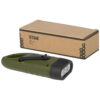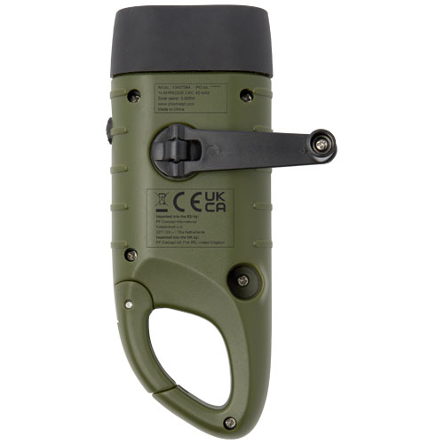 Stanco di rimanere senza energia quando ne hai più bisogno? Di’ addio alla frustrazione con questa soluzione luminosa Helios, innovativa e semplice. Questa torcia a dinamo solare in plastica riciclata include un moschettone incorporato per agganciarla facilmente a zaini, cinture o attrezzi, indispensabile per il campeggio o le escursioni. Utilizzando la manovella un solo minuto, potrai godere di ben 8 minuti di luce. E quando il sole splende, il pannello solare ne sfrutta l’energia, per garantire una fonte di luce sempre pronta. Dotata di 3 luci LED con una luminosità di 10.000 mcd. Tipo di batteria: 40 mAh Ni-Mh 3,6 V. Confezionato all’interno di una confezione regalo STAC realizzata da fonti sostenibili.
