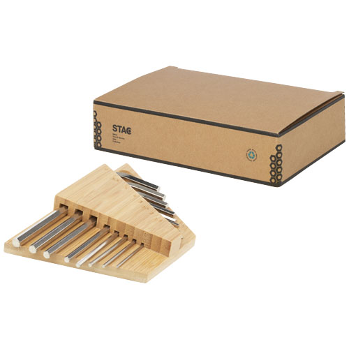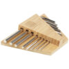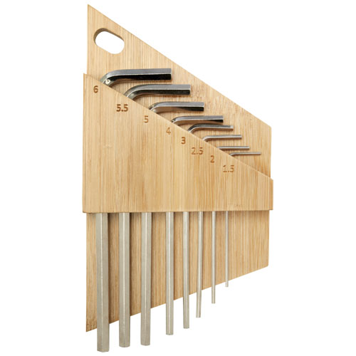 Il set di attrezzi Allen con chiave esagonale in bambù è essenziale quando sei alle prese con progetti di bricolage o per montare i mobili. Il set comprende 8 chiavi esagonali realizzate in acciaio al carbonio resistente, per garantire robustezza e resistenza alla corrosione. Con utensili di dimensioni comprese tra 1,5 e 6 mm, avrai a portata di mano quello giusto per qualsiasi attività. La custodia in bambù certificato non tiene solo in ordine le chiavi esagonali, ma aggiunge anche un tocco di eleganza, praticità e sostenibilità al tuo spazio di lavoro. Poiché il bambù è un materiale naturale, potrebbero esserci lievi variazioni di colore e dimensioni, che possono influire sul design finale di ogni pezzo. Confezionato all’interno di una confezione regalo STAC realizzata da fonti sostenibili.