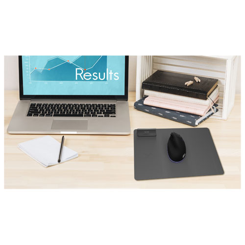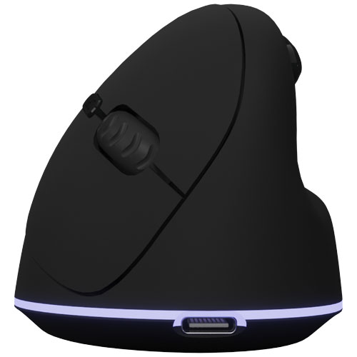 Mouse wireless ricaricabile (10,8 x 6,2 x 3 cm) in materiale sottoposto a trattamento antibatterico con logo luminoso. Il mouse può essere utilizzato fino a 8 ore con una sola ricarica. Il design ergonomico aiuta a ridurre lo sforzo e l’affaticamento della mano per un periodo di tempo prolungato. La distorsione del palmo della mano e del braccio è ridotta grazie all’angolo di 66°. Il logo luminoso stampato si illumina quando il mouse è carico e si spegne quando la batteria ha il 20% di capacità residua. Incluso cavo di ricarica USB da 0,70 metri realizzato in PET riciclato. Quando la batteria è completamente scarica, il mouse può comunque essere utilizzato con il cavo di ricarica. Fornito in una confezione regalo di colore nero (13,5 x 9,8 x 9 cm) con chiusura magnetica. Garanzia di 3 anni inclusa.