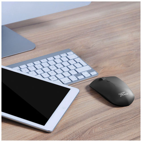 Mouse ottico wireless ricaricabile con logo luminoso e trattamento antibatterico. Il logo si illumina quando il dispositivo è completamente carico e si spegne quando rimane il 20% della batteria. Ingresso/uscita USB: 5 V – 0,035 A. Capacità: 400 mAh. DPI: 800/1.200/1.600. Tempo di ricarica: 3 ore. Cavo USB di 1 metro incluso. Vengono forniti in una confezione regalo con chiusura magnetica, realizzata in carta riciclata.