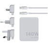 Il caricabatterie da viaggio da 140 W GaN Ultra è stato progettato per essere più compatto e potente che mai. Grazie al suo design compatto e alla funzionalità a doppia porta, questo caricabatterie da viaggio è perfetto per gli spostamenti, l’ufficio o la casa. Con le opzioni di spina CA UE, UK e USA incluse e il cavo USB-C PD da 240 W (2 metri), avrete tutto ciò che vi serve per ricaricare i dispositivi in tutto il mondo!