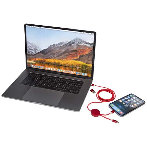 Il cavo Alasia 5-in-1 per la sincronizzazione dei dati e la ricarica rapida da 27 W è realizzato in alluminio e plastica riciclati, elegante e resistente. Il cavo è caratterizzato da connettori di ingresso USB-A e di Tipo-C abbinati a un connettore di uscita combinata di Tipo-C e Lightning/Micro USB. La connessione da USB-A a USB-C fornisce una potenza massima di 27 W, mentre tutte le altre opzioni di connessione offrono una potenza massima di 15 W. Compatibile sia con CarPlay che con Android Auto. Sia a casa, in ufficio o durante gli spostamenti, il cavo Alasia offre prestazioni e stile in un unico pacchetto compatto. Lunghezza del cavo: 150 cm.