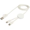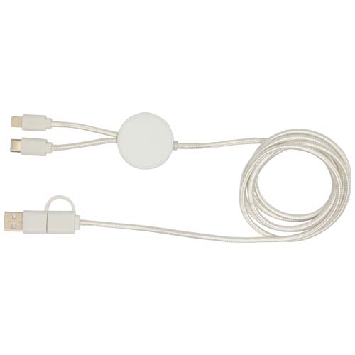 Il cavo Citala 5-in-1 per la sincronizzazione dei dati e la ricarica rapida da 27 W è realizzato in plastica riciclata. Il cavo è caratterizzato da connettori di ingresso USB-A e di Tipo-C abbinati a un connettore di uscita combinata di Tipo-C e Lightning/Micro USB. La connessione da USB-A a USB-C fornisce una potenza massima di 27 W, mentre tutte le altre opzioni di connessione offrono una potenza massima di 15 W. Compatibile sia con CarPlay che con Android Auto. Sia a casa, in ufficio o durante gli spostamenti, il cavo Citala offre prestazioni e stile in un unico pacchetto compatto. Lunghezza del cavo: 150 cm.