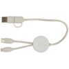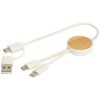 Il cavo Chechia 5-in-1 per la sincronizzazione dei dati e la ricarica rapida da 27 W è realizzato in plastica riciclata e impreziosito da materiale in bambù di provenienza responsabile. Il cavo è caratterizzato da connettori di ingresso USB-A e di Tipo-C abbinati a un connettore di uscita combinata di Tipo-C e Lightning/Micro USB. La connessione da USB-A a USB-C fornisce una potenza massima di 27 W, mentre tutte le altre opzioni di connessione offrono una potenza massima di 15 W. Compatibile sia con CarPlay che con Android Auto. Sia a casa, in ufficio o durante gli spostamenti, il cavo Chechia offre prestazioni e stile in un unico pacchetto compatto. Lunghezza del cavo: 30 cm.
