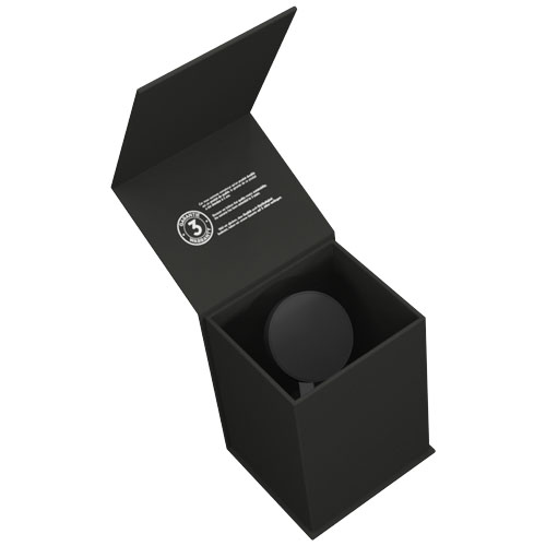 Caricabatterie wireless magnetico con logo luminoso e 2 uscite a induzione separate per caricare 2 dispositivi contemporaneamente. La parte rotonda è un caricabatterie wireless magnetico da 15 W. Per sfruttare la potenza di ricarica di 15 W, il caricabatterie deve essere collegato a un adattatore da parete di almeno 20 W con il cavo in dotazione. La base è realizzata con un ingresso e un’uscita USB-C e un’uscita a induzione da 5 W per caricare una custodia per auricolari (tipo AirPods). Il caricabatterie è dotato di un adesivo magnetico per garantire la compatibilità con tutti i telefoni (il dispositivo deve essere compatibile con la ricarica a induzione). Se il telefono non dispone della tecnologia MagSafe (a partire da iPhone 12), l’adesivo può essere attaccato sul retro per renderlo compatibile con il supporto magnetico. Fornito con un cavo di ricarica realizzato in PET riciclato. Dimensioni del caricabatterie: 7 x 8 x 12,5 cm. Fornito in una confezione regalo (11 x 10 x 12,5) con chiusura magnetica. Garanzia di 3 anni inclusa.