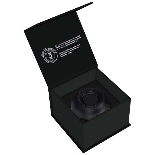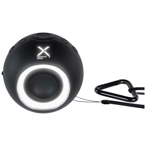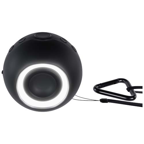 Speaker Bluetooth® wireless da 10 W con logo luminoso e finitura in gomma. Lo speaker è dotato di una doppia uscita audio per una qualità del suono ineguagliabile. Per ottenere un suono migliore, è possibile anche associare 2 speaker. Include un moschettone per un pratico utilizzo all’aperto. Livello di impermeabilità IPX6. Modalità radio FM. Fornito in una confezione regalo in cartone riciclato (11,3 x 10,7 x 8,7 cm).
